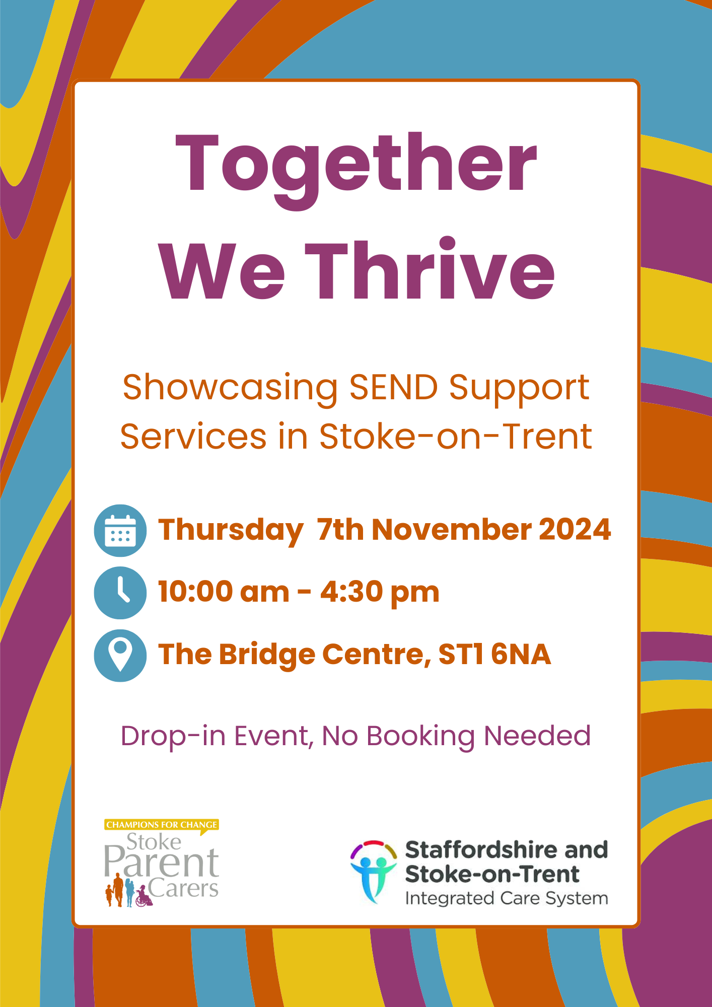 Whether you’re a parent carer for someone with Special Educational Needs or Disabilities (SEND), a health professional, or you simply have an interest in SEND and SEND support, you’re invited to drop in to see us and some of the other organisations providing this kind of support in Stoke-on-Trent.