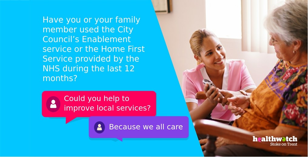 Stoke-on-Trent City Council are working with NHS colleagues to review and modernise local reablement services in 2024. As a result we would like to talk to people who have used the City Council’s Enablement service or the Home First Service provided by the NHS during the last 12 months.