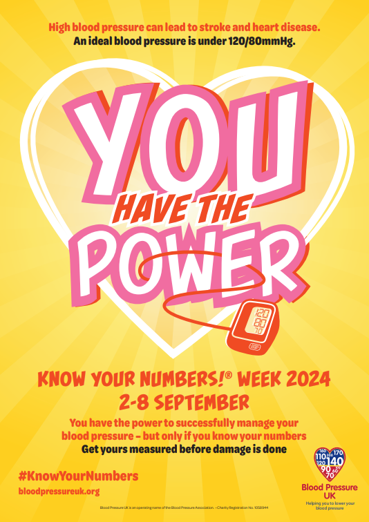 It is thought that around 6 million people in the UK have high blood pressure and are not aware of it. High blood pressure is the main cause of strokes and heart attacks in the UK but as it often has no symptoms it goes undetected. Know Your Numbers week aims to reduce that by encouraging people to get a blood pressure check and therefore, taking the first steps to reducing their risk of a stroke or a heart attack. Knowing your numbers means that you can start making lifestyle changes or get medication to help bring your blood pressure down.