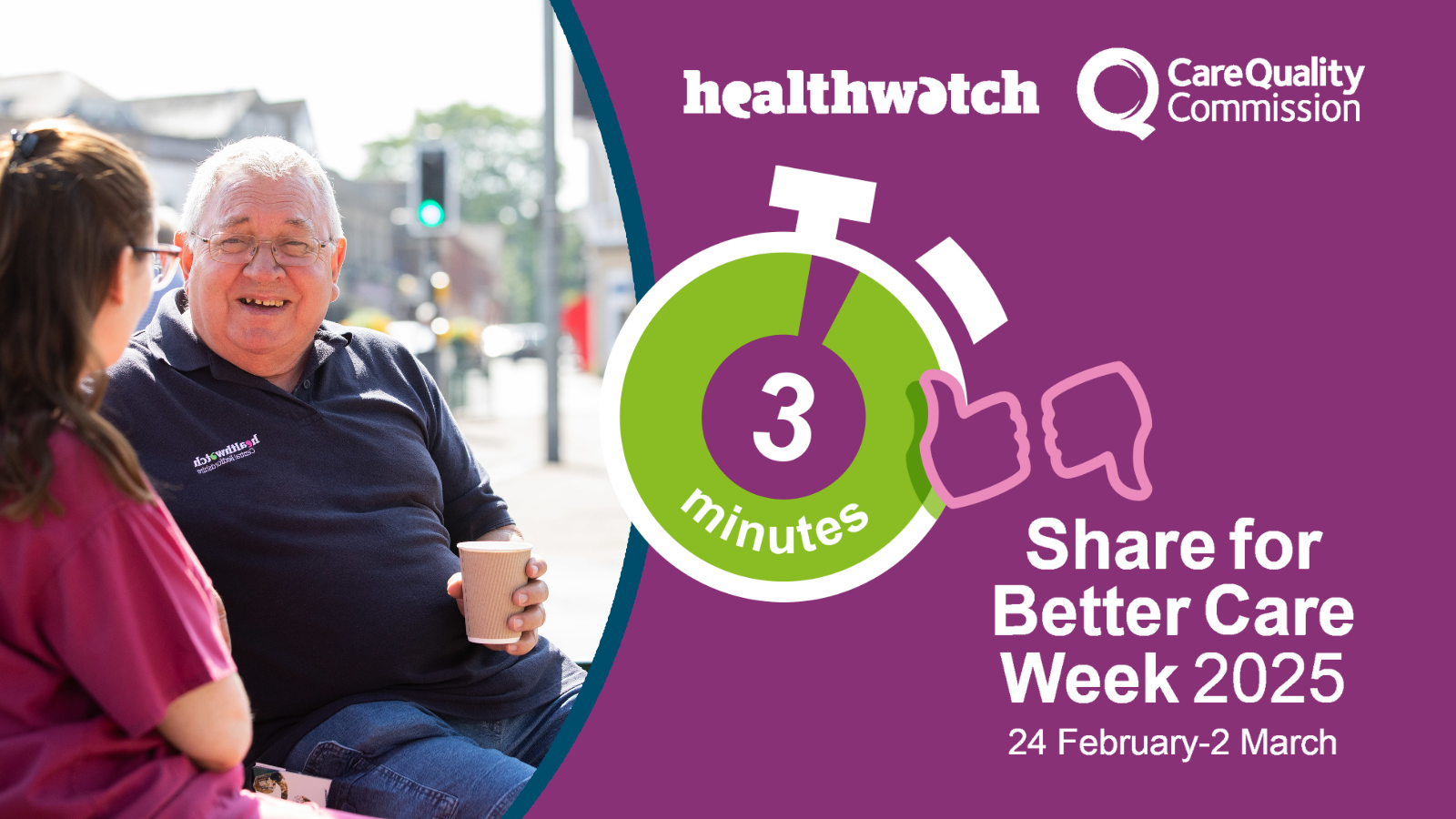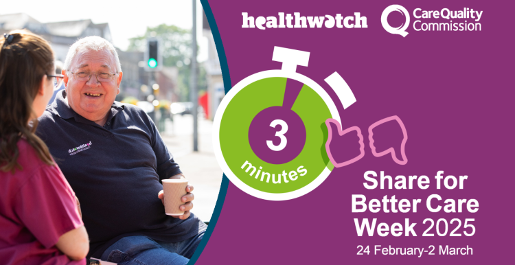 To find out more about Share for Better Care Week, or to share your feedback, visit: www.cqc.org.uk/give-feedback-on-care or www.healthwatch.co.uk/have-your-say.