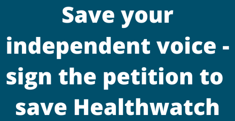 Local Healthwatch have put together a petition calling on the government to protect the independence of local voices in health and care and we ask for your support in signing it: Keep independent services that give the public a voice in NHS and Social Care