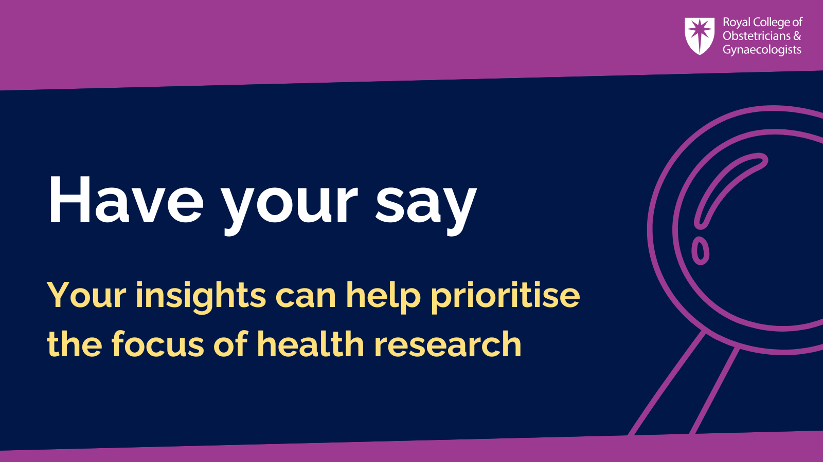Help the RCOG to identify which unanswered research questions are the most important by completing the short survey: https://www.rcog.org.uk/womens-health-research/